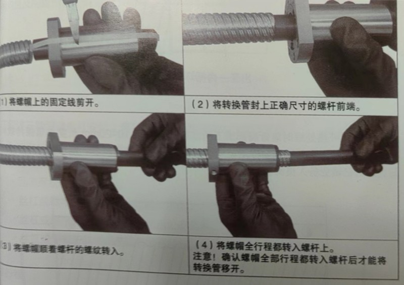 將安裝輔助套筒推至螺紋起始端面,將螺母從絲杠上旋至輔助套筒上,然后將套筒連同螺母一起并小心取下,此時特別需要注意,千萬不要使套筒從螺母內脫落。一旦螺母和套筒脫離,螺母內的滾珠就會散落。安裝順序與拆卸順序相反,必須特別小心謹慎的安裝,否則螺母、絲杠或其他內部零件也許會受損或掉落,導致滾珠絲杠傳動系統的提前失效。